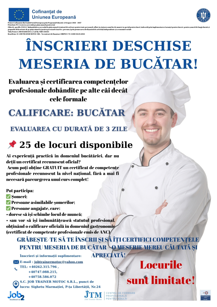 ÎNSCRIERI CALIFICARE ÎN MESERIA DE BUCĂTAR DESCHISE PÂNĂ ÎN 25 NOIEMBRIE!